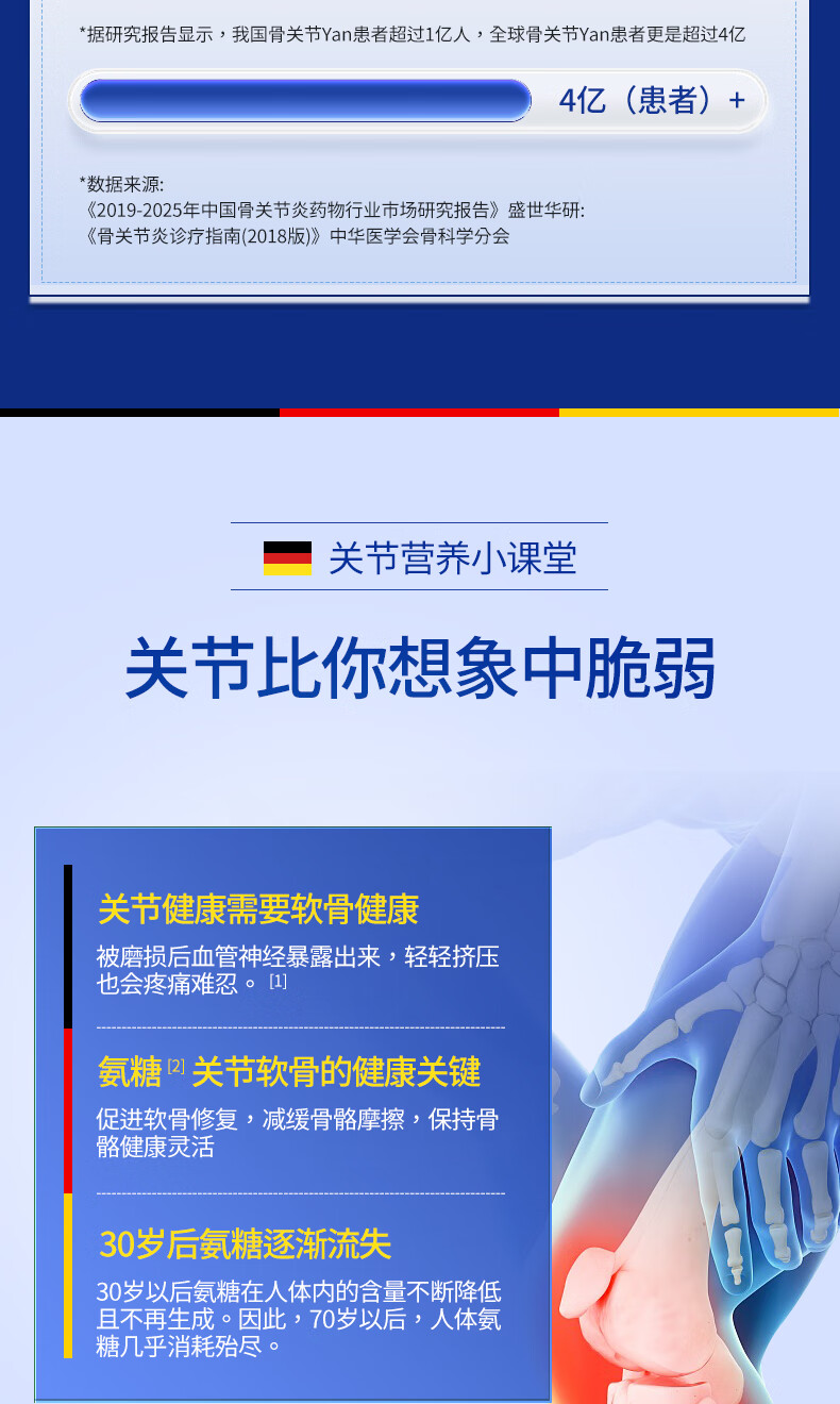 德国原装进口氨糖尳得康60粒/瓶,2瓶/盒,2盒装