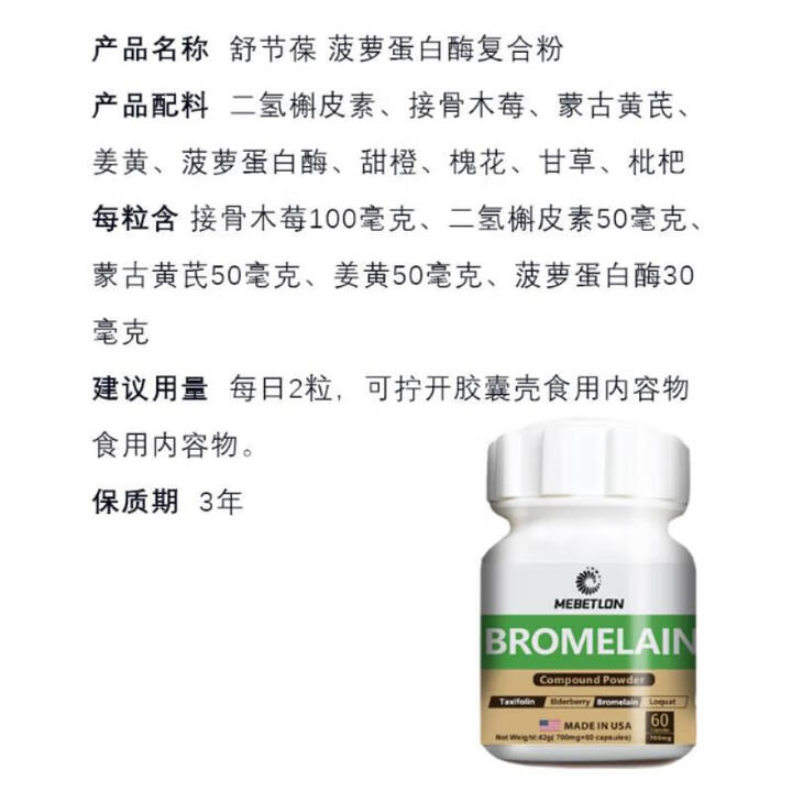 舒节葆菠萝蛋白酶复合粉,4瓶装