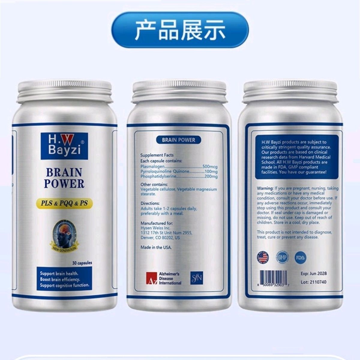 美国拜滋PLS大脑神经强力芯30粒/瓶,6瓶装
