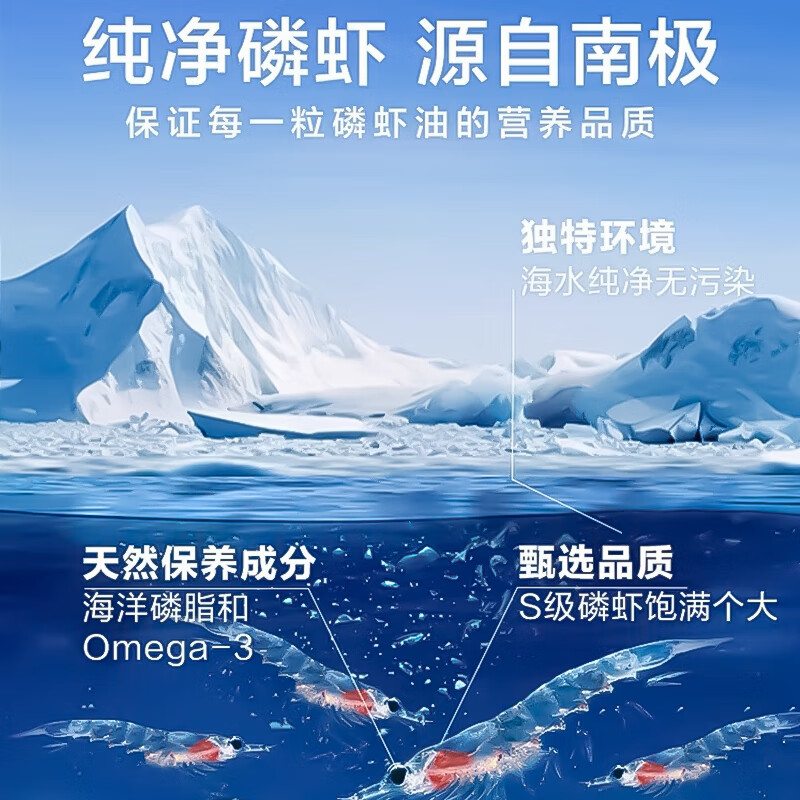 美国原装进口磷虾油60粒/瓶,3瓶/盒,单盒装