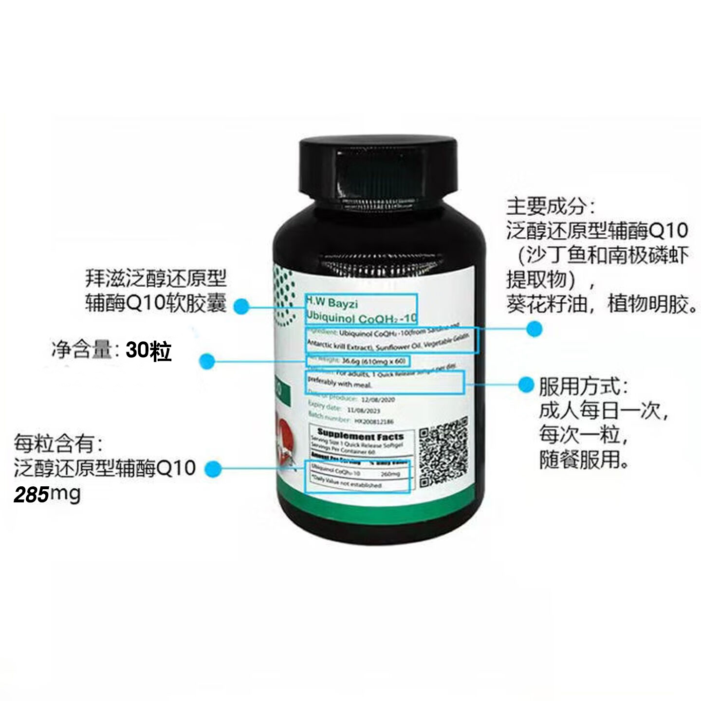 美国拜滋Bayzi高纯还原辅酶Q10(升级版)30粒/瓶,8瓶装