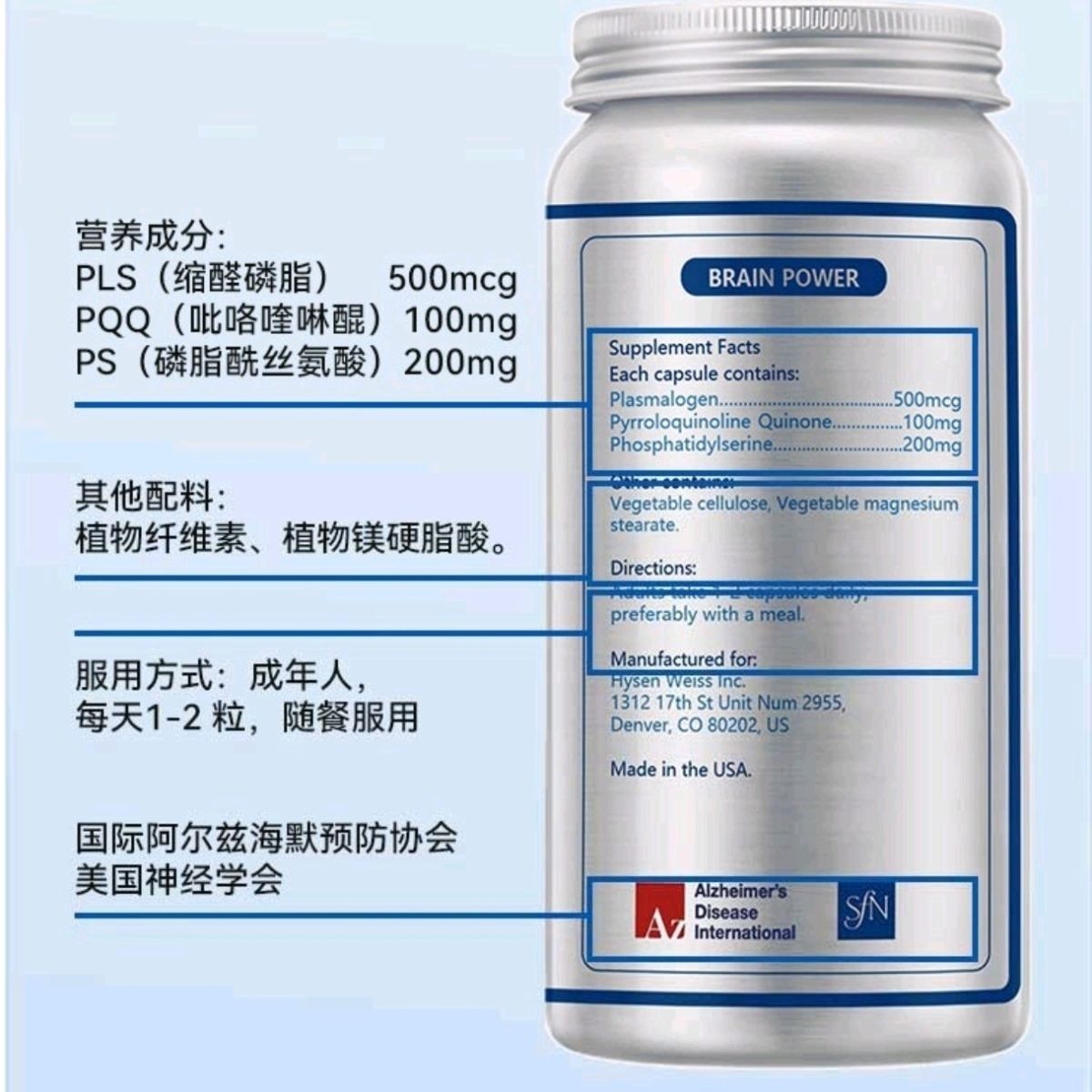 美国拜滋PLS大脑神经强力芯30粒/瓶,6瓶装