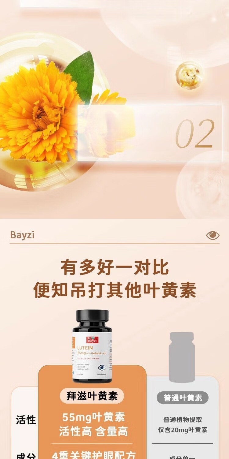美国拜滋Bayzi叶黄素60粒/瓶,8瓶装