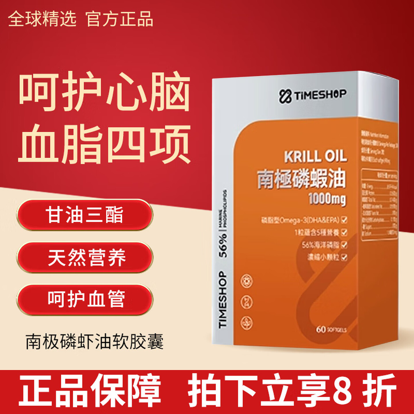 timeshop南极磷虾油软胶囊60粒/瓶*3瓶