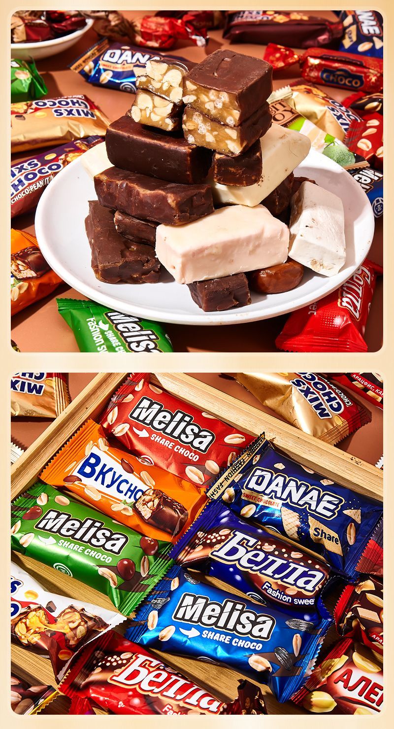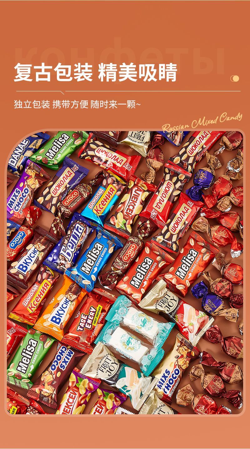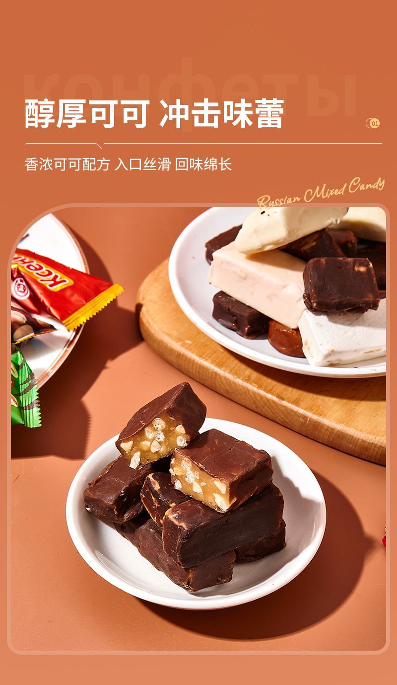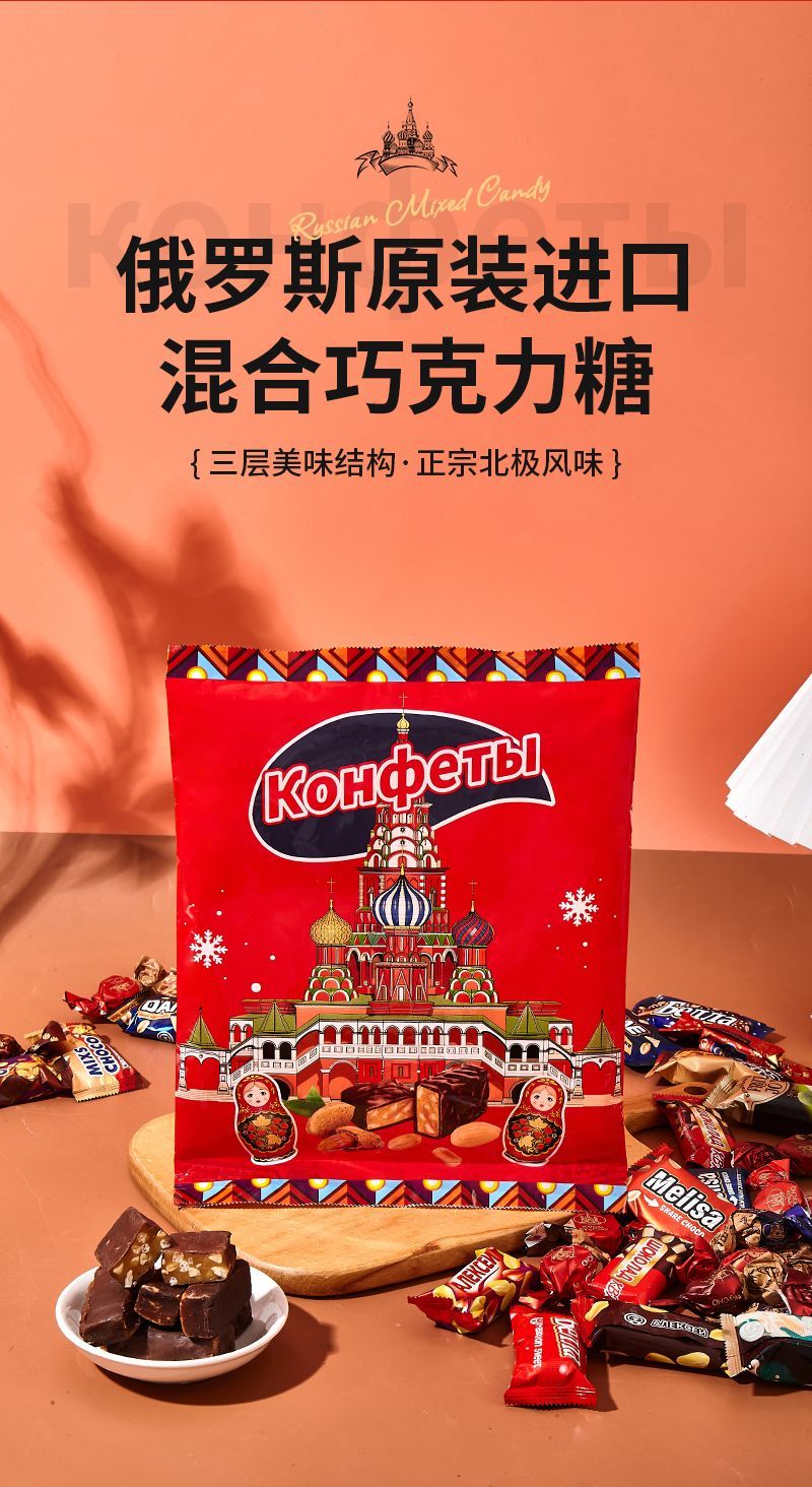 酷帮熊俄罗斯进口混合巧克力夹心糖果500g*4袋/盒