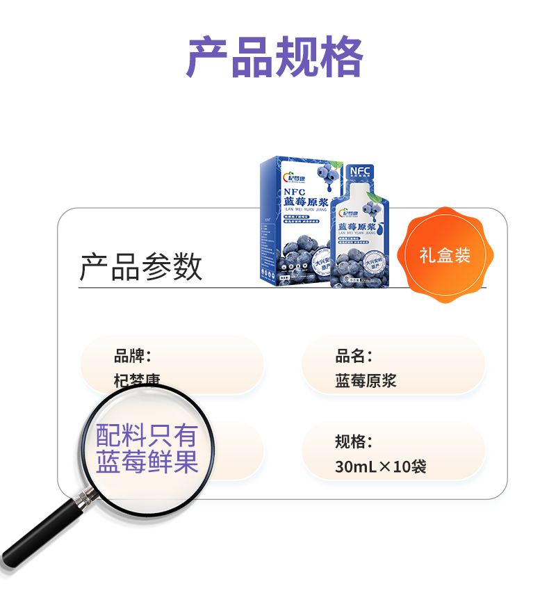 杞梦康蓝莓原浆 30ml*10袋/盒*10盒