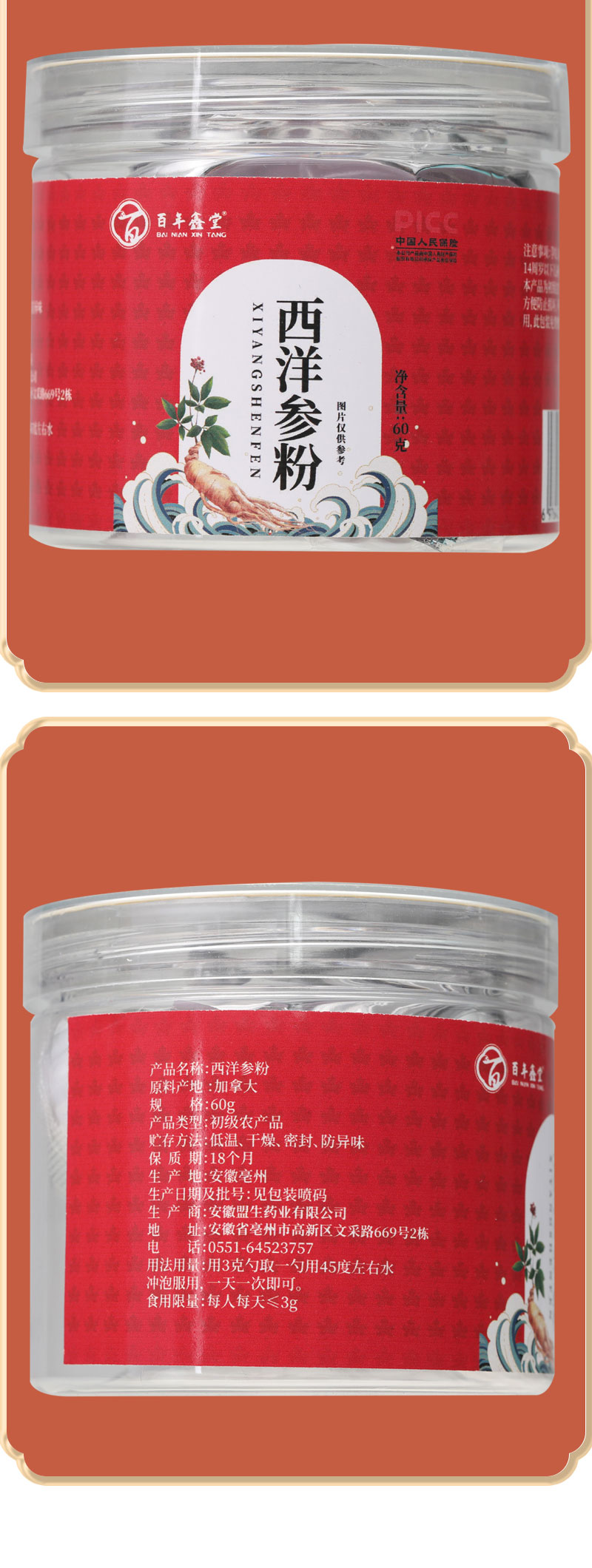 百年鑫堂西洋参粉滋补组 60g/罐 20罐/组